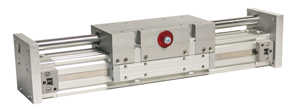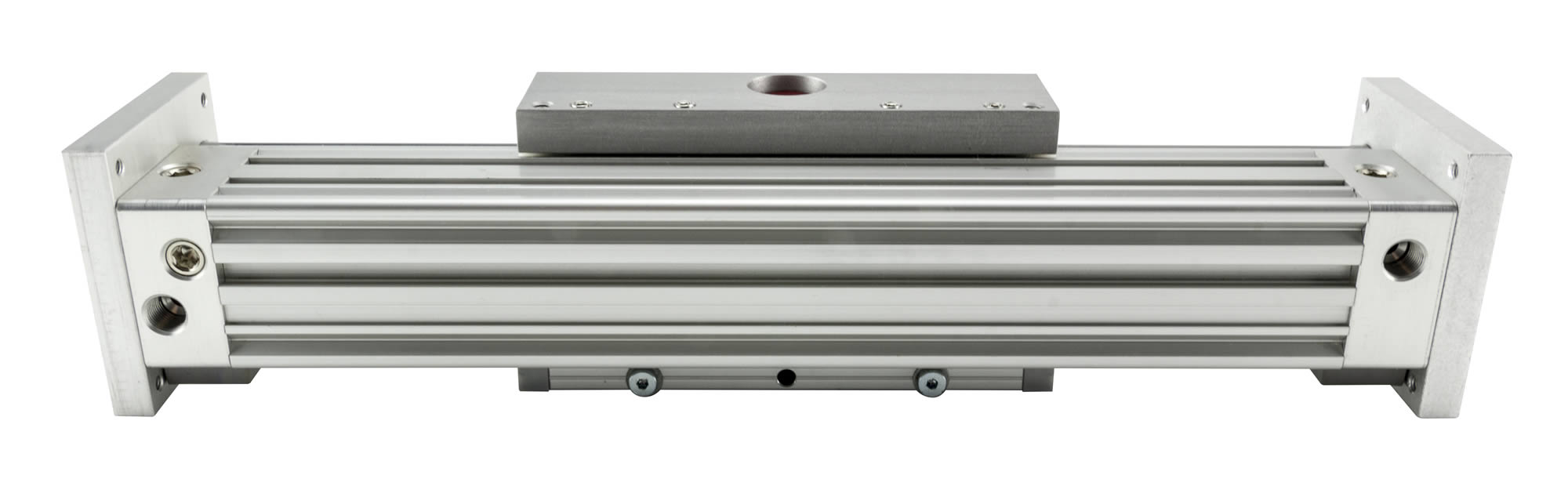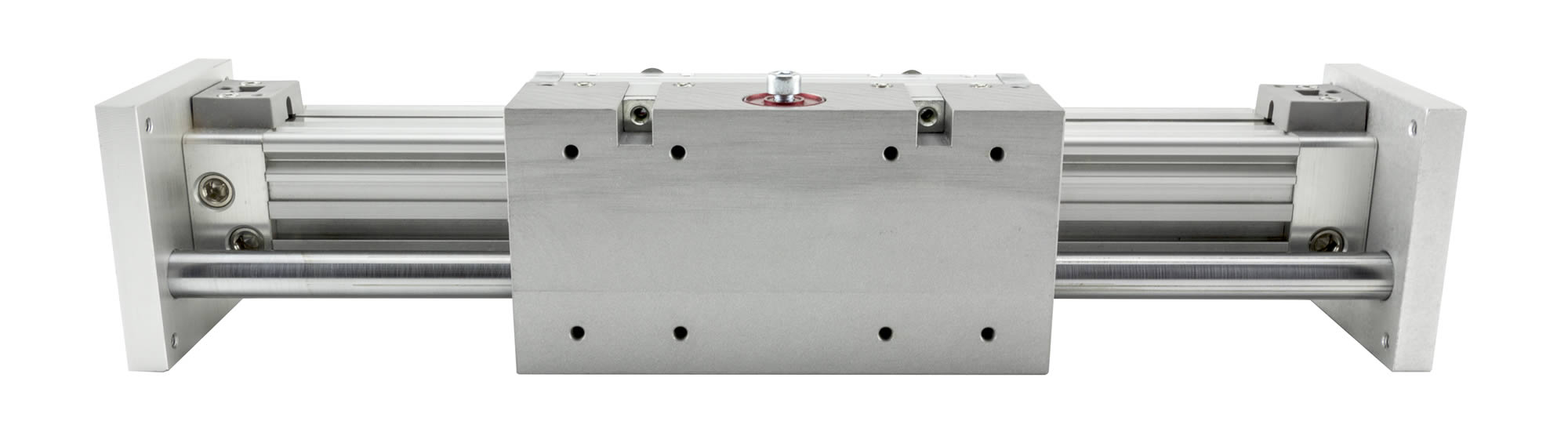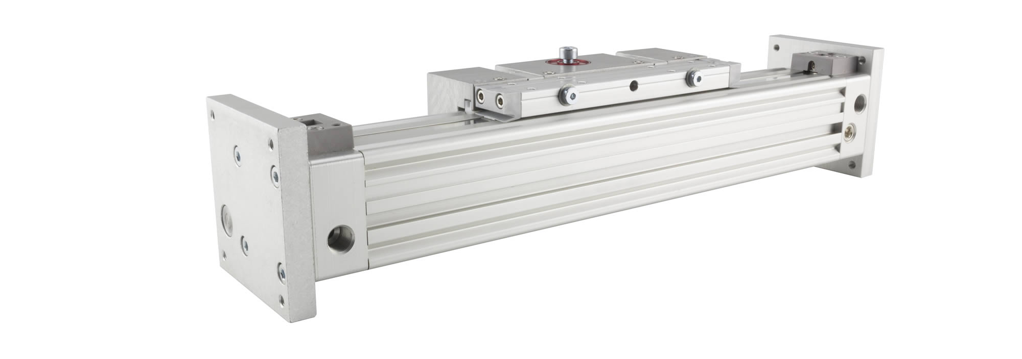 Beim Einsatz von kolbenstangenlosen Pneumatikzylindern empfehlen wir grundsätzlich die Ansteuerung mit einem 5/3-Wegeventil mit offener Mittelstellung.